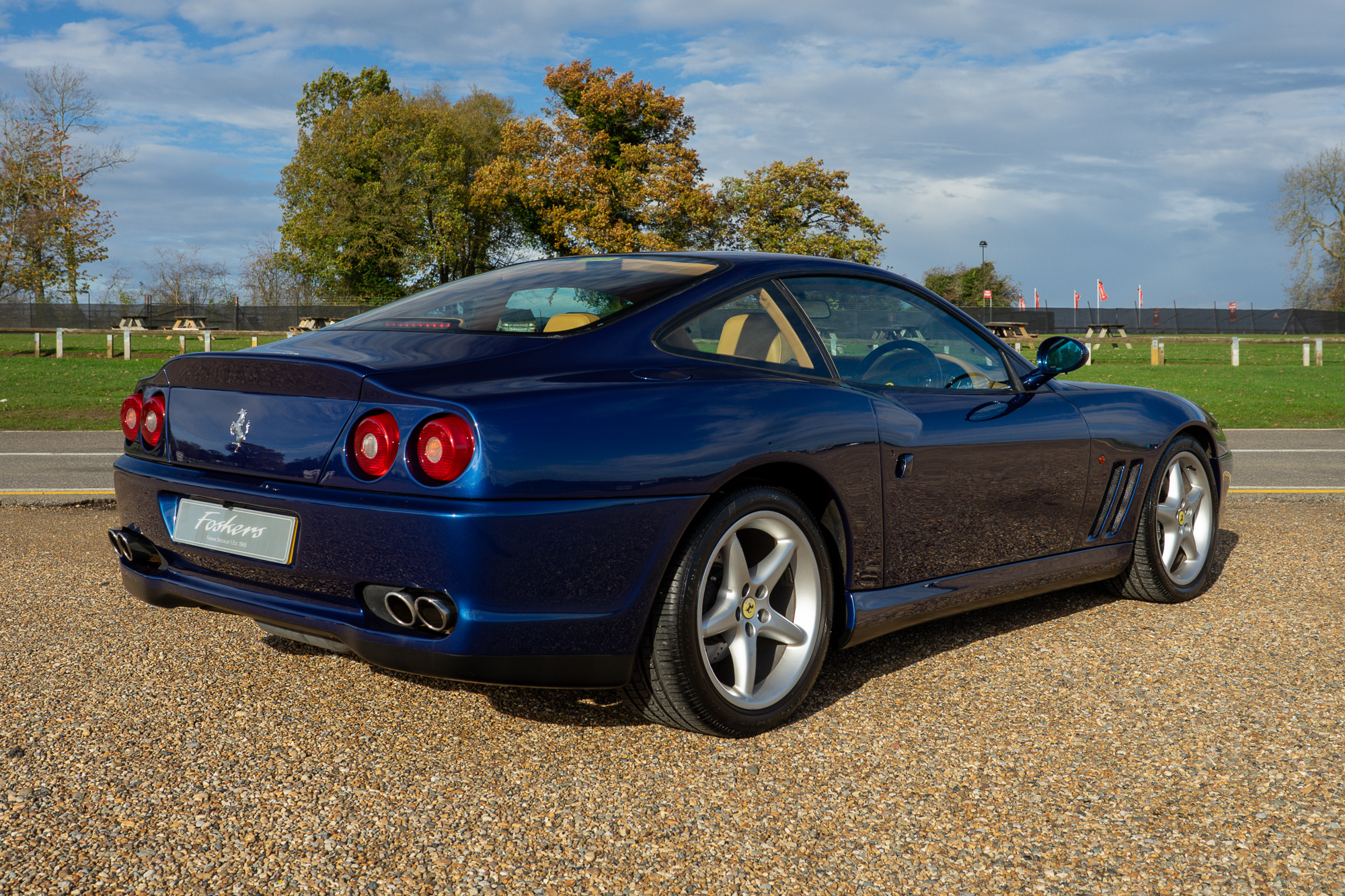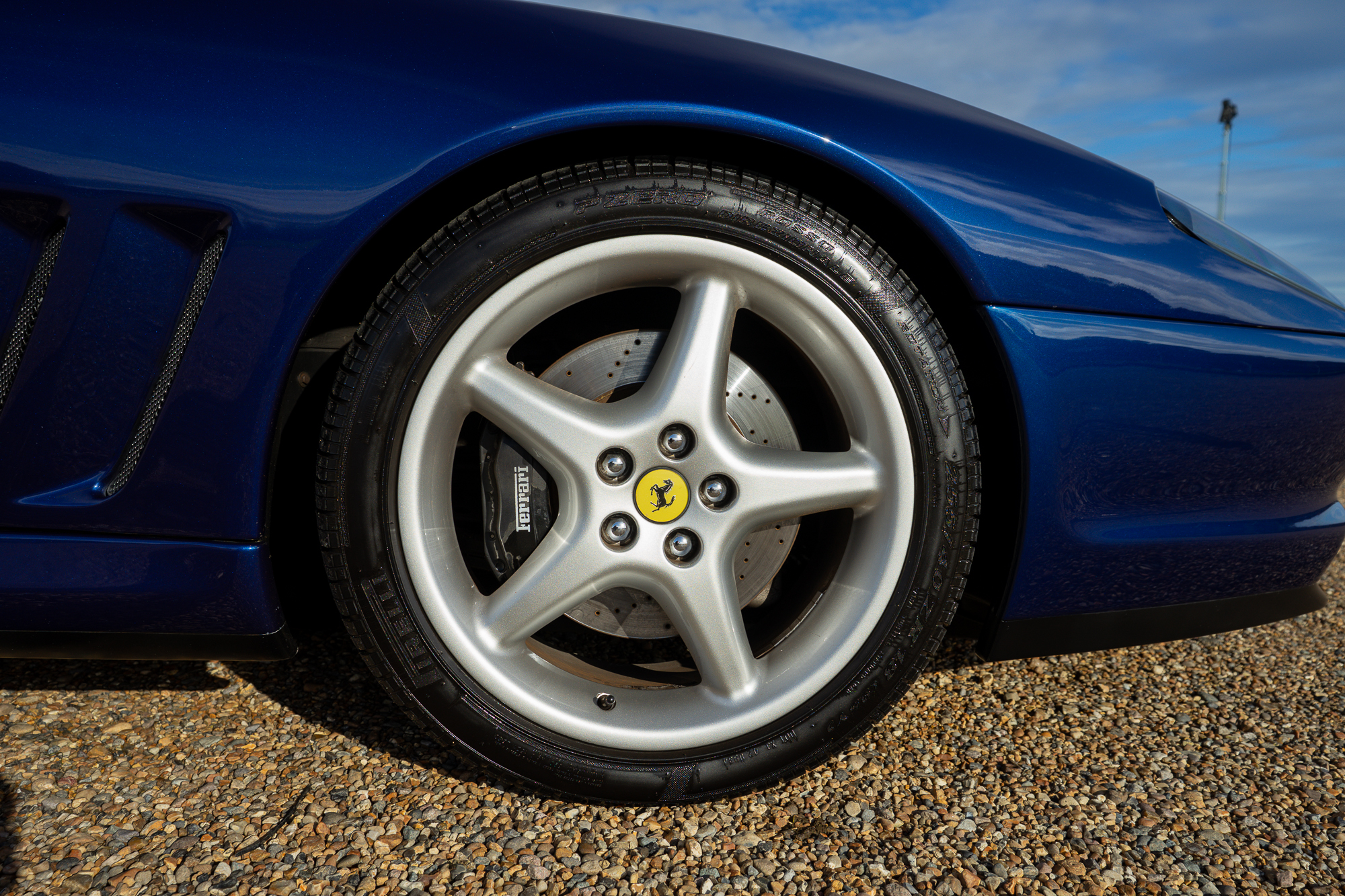 Powering the 550 is the F133A, a 48 valve quad-cam V12 producing 485hp and 419 lb/ft torque. A variable length intake optimizes power across the rev-range offering a very refined driving experience with . The handling is really a standout, hydraulically assisted steering is dictated by road speed so the feel and texture through the wheel is quality. Featuring a transaxle layout the all sycromesh 6-speed gearbox offers a tractable and smooth delivery of power. Ferrari got things right with the 550 lapping the famed Fiorano test circuit 3 seconds quicker than the 512M it replaced. In 1998, a slightly modified 550 set three world speed records at the Transportation Research Centre in Ohio. The near perfect 50/50 weight distribution and reliability also set it up well for endurance racing, with the 550 Maranello Prodrive winning the LMGT2 class at Le Mans in 2004.